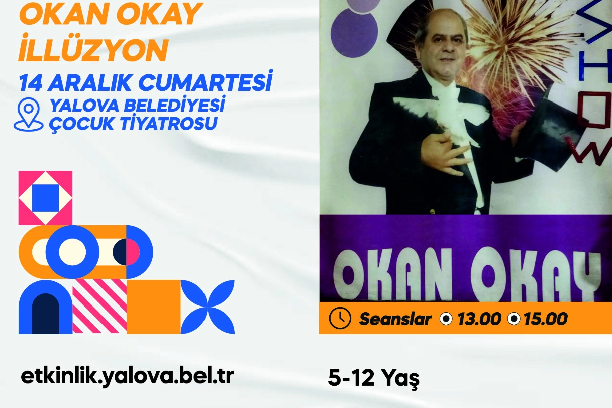 Yalova Belediyesi Çocuk Tiyatrosu’nda İllüzyonist Okan Okay tarafından sahnelenecek olan illüzyon gösterisi 13:00 ve 15:00 saatlerinde 2 seans olarak yer alacak. 5-12 yaş çocukların yer alabileceği gösteriyi seyredebilmek için https://etkinlik.yalova.bel.tr/ adresinden kayıt yaptırılmasının gerektiği belirtildi.