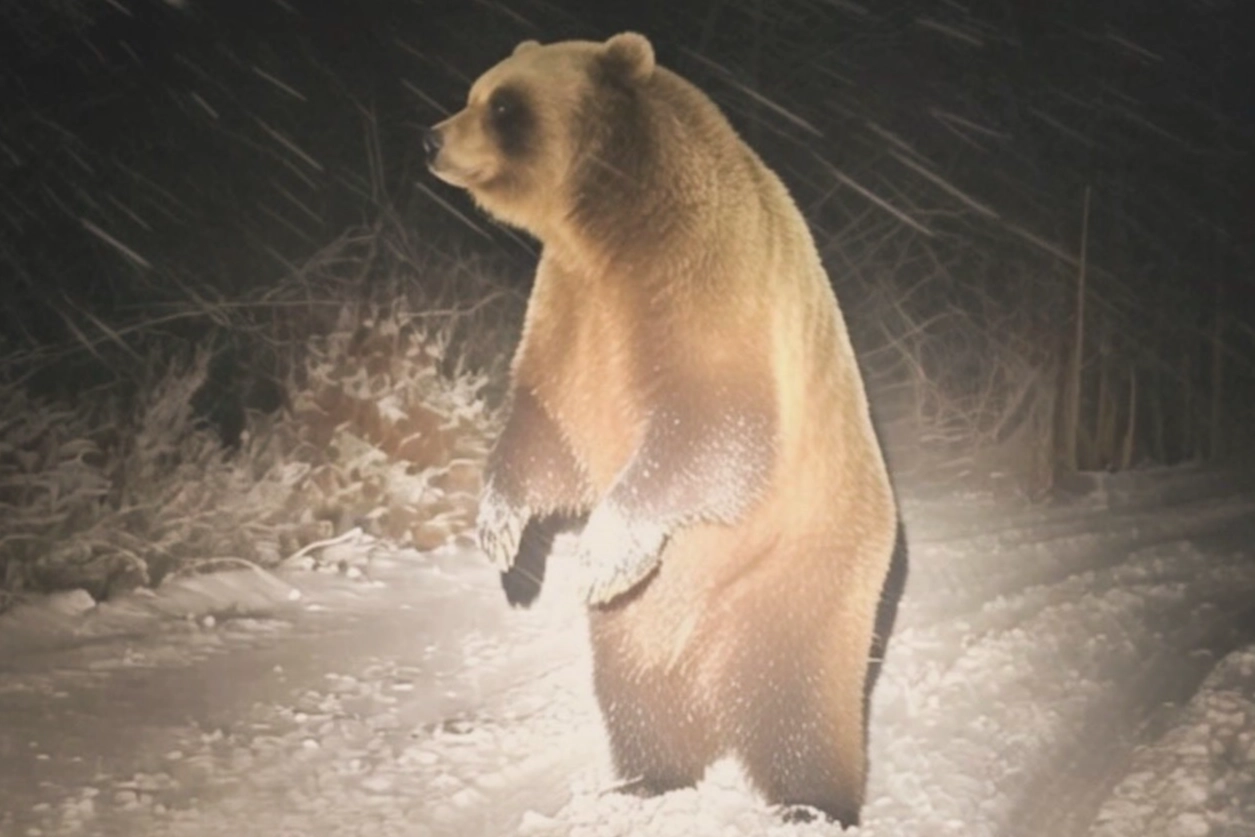 Beyaz örtüyle kaplanan yaylada ilerleyen araçların önüne bir anda boz ayı çıktı. Boz ayıyla burun buruna gelen ekibin üyeleri büyük panik yaşadı. Kar keyfi için yaylaya çıkan ekibin boz ayıyla burun buruna gelmesi adrenalin dolu dakikaların yaşanmasına neden oldu. Bir anda iki ayağının üzerine kalkan boz ayı, bir süre sonra bölgeden uzaklaştı. Ayı saldırısından son anda kurtulan ekibin üyeleri rahat bir nefes aldı. O anları cep telefonu kamerasıyla kayıt altına alan ekip daha sonra güvenli şekilde bölgeden ayrıldı.