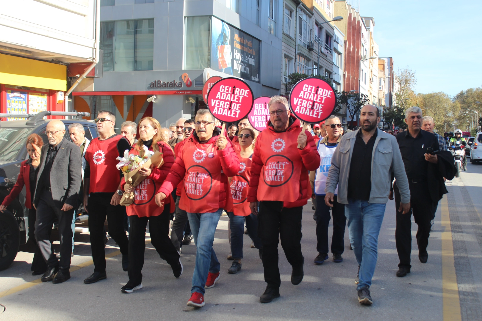 “Vergide adalet, gelirde adalet” talebiyle DİSK’in İstanbul’dan Ankara’ya başlattığı yürüyüş bugün üçüncü gününde Yalova’da devam etti. Yalova’ya ulaşan yürüyüş kortejine Yalovalılarda destekte bulundu.