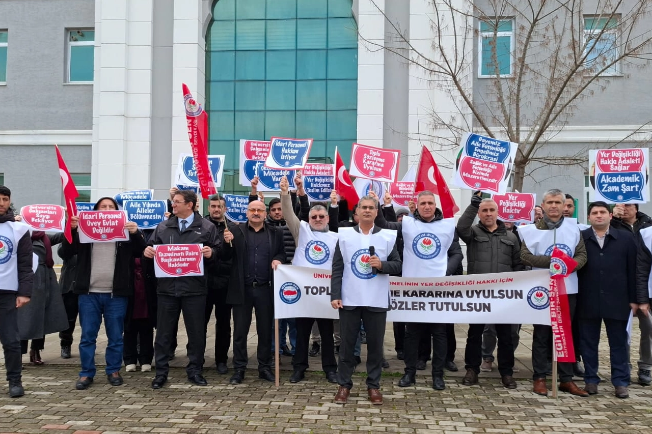 İş verimliliğini olumsuz etkiliyorKotçioğlu, idari personelin kurumlar arası yer değişikliği hakkından mahrum bırakıldığını belirterek, “Bu durum, personelimizin motivasyonunu düşürüyor ve iş verimliliğini olumsuz etkiliyor. YÖK Başkanlığı’nın üniversiteler arası merkezi yer değişikliğine imkan tanıyan bir düzenleme yapmasını talep ediyoruz” dedi.Ayrıca, üniversite daire başkanlarının makam tazminatından mahrum bırakıldığını vurgulayan Kotçioğlu, “Bu durum, Anayasa’nın eşitlik ilkesine aykırıdır. Daire başkanlarımıza da makam tazminatı ödenmeli ve unvanları 657 sayılı kanuna eklenmelidir” ifadelerini kullandı.