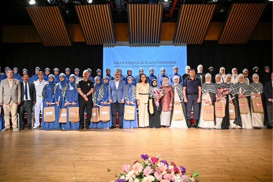 Yalova’da Vasfiye Turna Kur’an Kursu ve Hafız Kız Proje İmam Hatip Ortaokulu öğrencileri, 2024-2025 Eğitim Yılı Hafızlık İcazet Merasimi ile hafızlık eğitimlerini tamamlayarak belgelerini aldı.