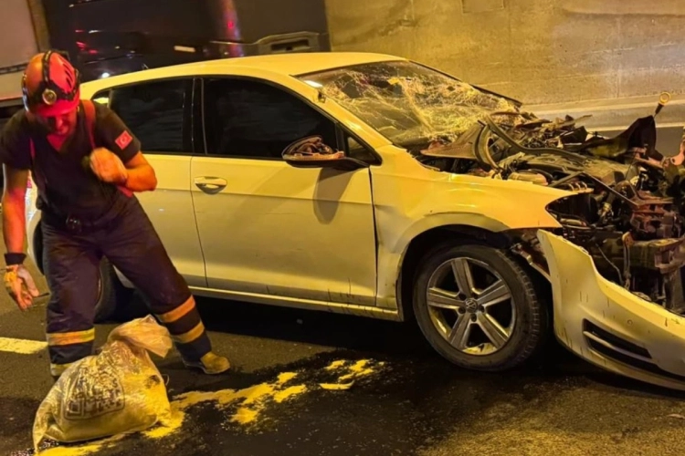 Feci kaza Gebze- İzmir Otoyolu Orhangazi Tüneli içinde meydana geldi. Alınan bilgilere göre Bursa yönüne seyir halinde olan otomobil, önündeki kamyona arkadan çarptı. Çarpmanın etkisi ile savrulan otomobil, hurdaya dönerken yolun bir şeridi trafiğe kapandı. Kazayı görenlerin ihbarı üzerine olay yerine sağlık ekipleri ve Çiftlikköy İtfaiyesi ekipleri sevk edildi. Kaza yerine gelen Çiftlikköy İtfaiyesi ekipleri, araçta sıkışan sürücüyü kurtararak sağlık ekiplerine teslim etti. Otomobil sürücüsü yaralı olarak hastaneye kaldırıldı.