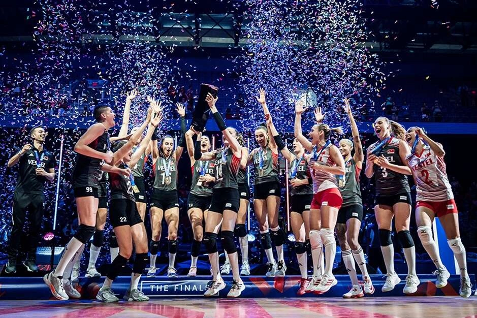 Kaptan Eda Erdem Dündar büyük bir coşkuyla şampiyonluk kupasını kaldırdı ve milli oyuncular salonda büyük sevinç yaşadı. Milli voleybolcular, şampiyonluğu kutladığı Türk seyircilerle fotoğraf çekilmeyi ihmal etmedi.