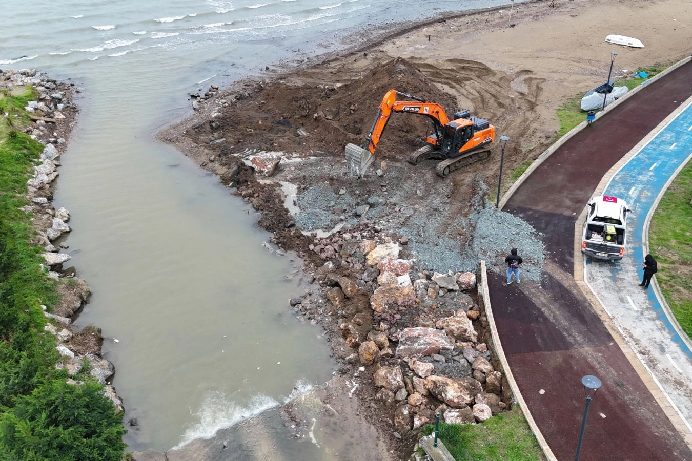 Belediye Fen İşleri Müdürü Erdinç Yıldız, son dönemde etkili olan yoğun yağış ve fırtınaların dere çıkış ağzında tahribata yol açtığını belirterek, “Yağışlar ve fırtına nedeniyle dere yatağında ve çıkış noktasında oyulmalar oluştu. Bu durum çevredeki zeminin dengesini bozdu, kumsalda tahribata neden oldu ve taşkın riskini artırdı. Hem can ve mal güvenliğini sağlamak hem de çevredeki yol, altyapı ve yerleşim alanlarını korumak amacıyla hızlı bir şekilde tahkimat çalışmasına başladık” dedi.