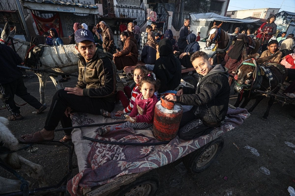 Dönüş yolundaki Filistinlilerin bitkin halleri, çocukların ise yüzlerindeki tebessüm dikkat çekti.