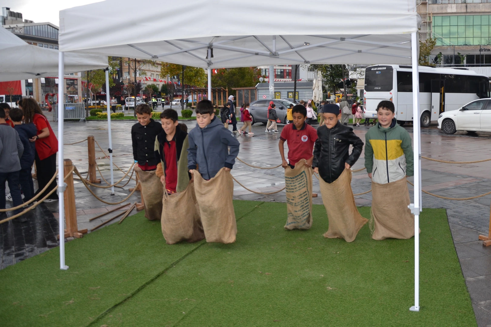 15 Temmuz Demokrasi ve Cumhuriyet Meydanı’nda park eden Geleneksel Oyunlar TIR’ı ilkokul öğrencilerinin akınına uğradı.