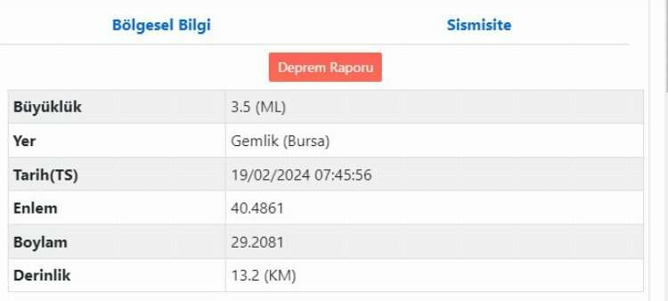 Saat 10.45’te meydana gelen depremin şiddeti Kandilli tarafından 3.6 olarak açıklandı ve 5.5 km derinliğinde olduğu kayıtlara geçti. Şahinyurdu Gemlik konumunda meydana gelen deprem Bursa ve Yalova’da da hissedildi. Afad ise depremin şiddetini 3.5 olarak açıkladı.
