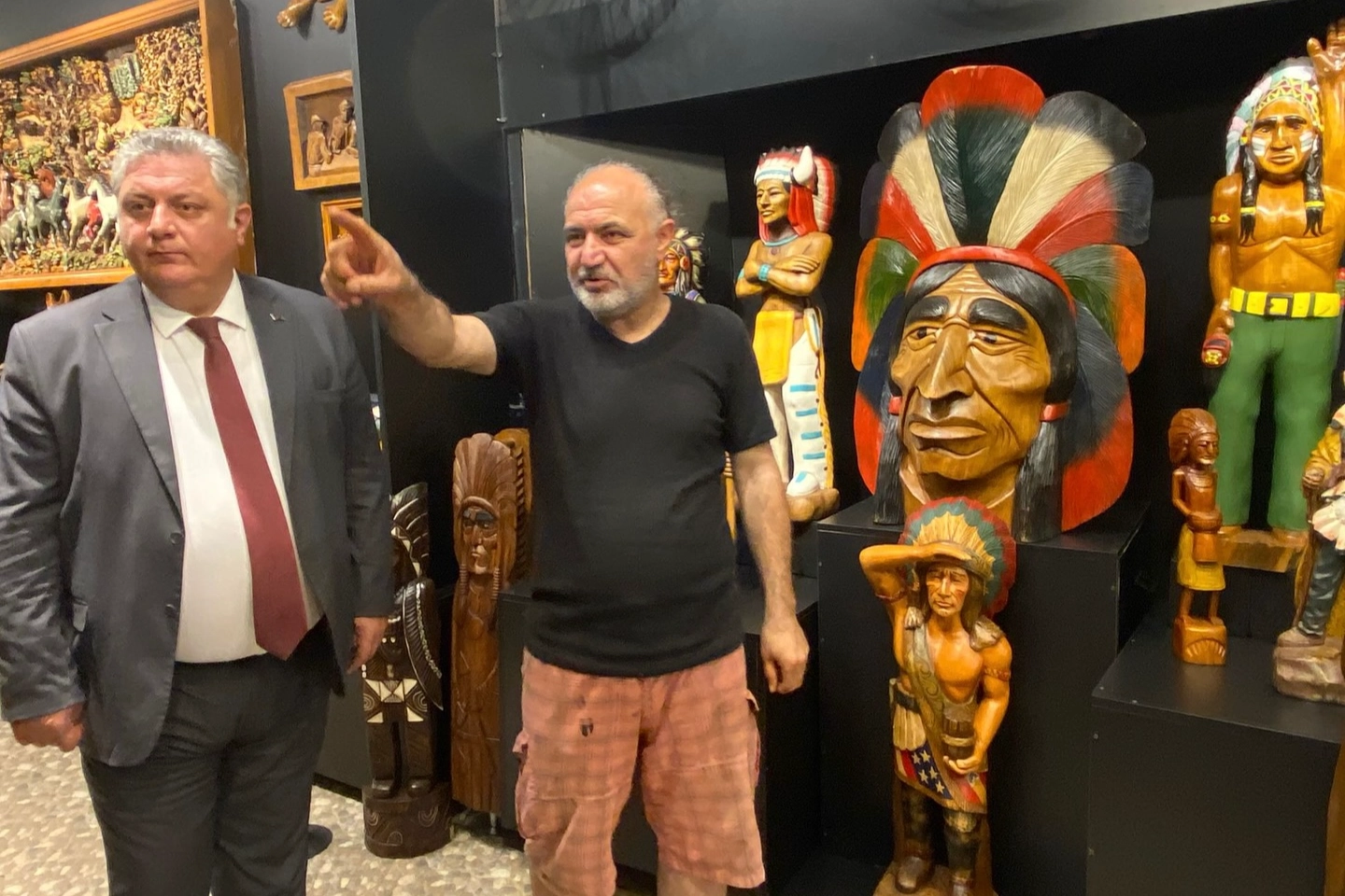 Yalova Belediye Başkanı Mehmet Gürel, sanatsever Hakan Evciman’ın yıllar içinde dünyanın dört bir yanından topladığı özel ahşap heykel koleksiyonunu yerinde inceledi.