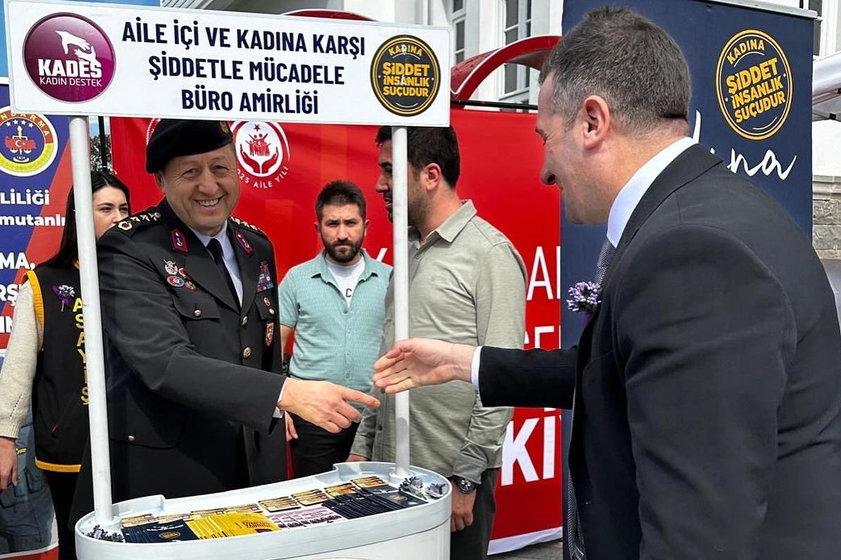 Kadına yönelik şiddetle mücadele konusunda bilgilendirme yapılan etkinlikte, farkındalık materyalleri de dağıtıldı.