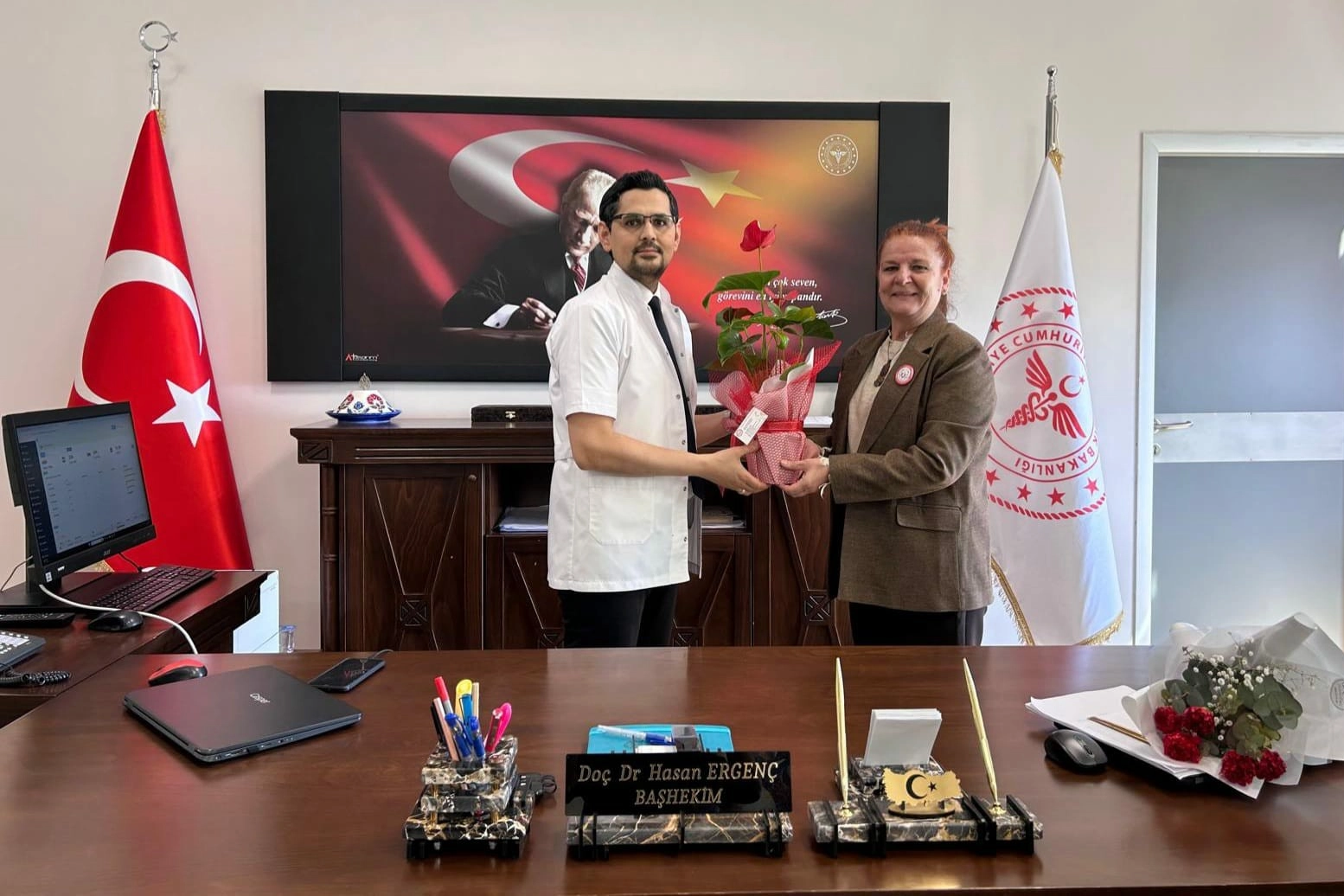 14 Mart Tıp Bayramı çeşitli etkinliklerle kutlandı. Bu çerçevede Yalova Kanser Hastaları Derneği yöneticileri de Yalova Eğitim ve Araştırma Hastanesi Başhekimi Doç. Dr. Hasan Ergenç’i makamında ziyaret etti. Dernek Başkanı Sibel Beyosmanoğlu ve yönetim kurulu üyeleri, Başhekim Ergenç’e çiçek takdim ederek, onun şahsında tüm sağlık çalışanlarının Tıp Bayramı’nı kutladı. Beyosmanoğlu, “Tıp Bayramı, sağlık çalışanlarımızın fedakârlıklarını bir kez daha hatırladığımız anlamlı bir gün. Başhekimimiz Doç. Dr. Hasan Ergenç’in şahsında tüm sağlık çalışanlarımıza teşekkür ediyor, onların bu kutsal meslekte her zaman yanında olduğumuzu belirtmek istiyoruz. Ayrıca, kanser hastalarımızın yaşadığı sorunların çözümü ve hizmetlerin iyileştirilmesi noktasında iş birliğimizin artarak devam etmesini temenni ediyoruz” dedi.