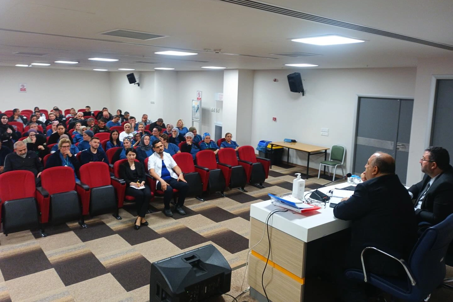 Yalova İl Sağlık Müdürü Uzm. Dr. Osman Karakuş ve Kamu Hastaneleri Hizmetleri Başkanı Dr. Burak Gül, Yalova Eğitim ve Araştırma Hastanesi'nde temizlik ve güvenlik personelleri ile bir toplantı düzenledi. Yalova Eğitim ve Araştırma Hastanesi Başhekimi Doç. Dr. Hasan Ergenç de toplantıya dinleyici olarak katılım sağladı. Toplantıda, hastane temizliği, hasta-çalışan güvenliği ve personelin yönetimden beklentileri gibi önemli konular detaylıca ele alındı. Dr. Osman Karakuş, hastanede görev yapan temizlik ve güvenlik personellerinin sağlık hizmetlerinin ayrılmaz bir parçası olduğunu belirterek, onların katkılarının büyük önem taşıdığını vurguladı. Ayrıca, personelin karşılaştığı zorluklar ve ihtiyaçlarının da göz önünde bulundurularak gerekli desteklerin sağlanması gerektiğine dikkat çekti.