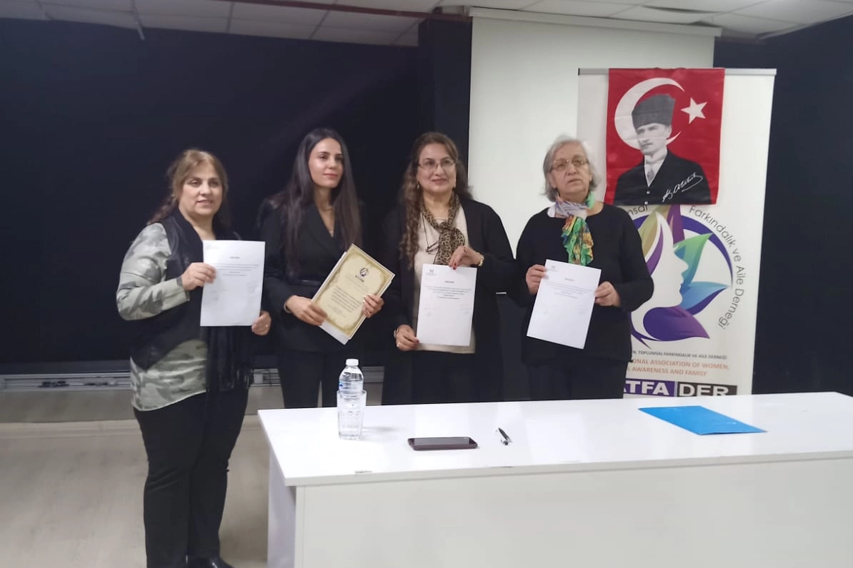 İmza sonrasında Dernek Başkanı Nurten Anıl tarafından Mülkiye Ergin'e teşekkür belgesi sunuldu.