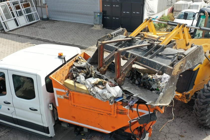 Kirazlı Sanayi Sitesi içinde yapılan temizlik çalışmasında kötü görüntüye neden olan moloz, atık lastikler başta olmak üzere katı atıklar toplandı.
