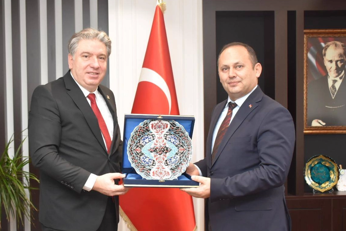 Görüşme sonunda Rektör Bahçekapılı, ziyareti anısına Bölge Müdürü Esat Şimşek’e bir hediye takdim etti.