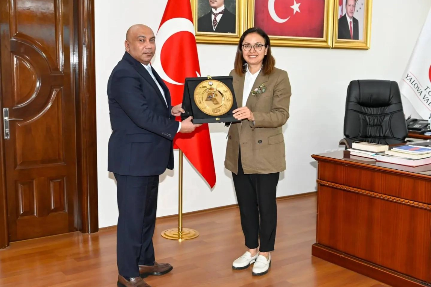 Yalova Valisi Dr. Hülya Kaya, Kuveyt İstanbul Başkonsolosu Mohammad S.A.S. Alsharji'yi makamında ağırladı. Ziyaret duyduğu memnuniyeti ifade eden Vali Dr. Hülya Kaya, Türkiye ve Kuveyt arasındaki ekonomik ve sosyal ilişkilerin güçlü olduğunu vurguladı. Vali Kaya, "Yalova ve Kuveyt arasında da bu ilişkileri daha da güçlendirebiliriz. Kuveytli yatırımcıları Yalova'ya davet ediyor ve her türlü iş birliği fırsatına açık olduğumuzu belirtmek istiyorum" dedi.