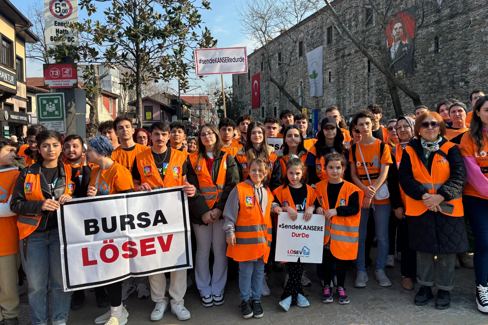 Lösemi ve kanser ile mücadele eden çocuklar ve yetişkin hastalar için çalışan LÖSEV, toplumda farkındalık yaratmayı ve kanserle mücadelede destek sağlamayı sürdürüyor. Kurum yetkilileri, Türkiye genelinde gönüllülerin ve kanser ile mücadele eden ailelerin de katılımı ile aktivist çalışmaya imza attı. Gönüllüler ve kanser ile mücadele edenler “Kanser Olmak İstemiyoruz, Kansere Dur De!, Kanser Değil Biz Güçlüyüz” yazılı pankartlar taşıyarak farkındalık yaratmayı hedefledi. LÖSEV yetkilileri çalışmada okunan bildiride, “Ülkemizde her yıl 200 bin yeni kanser vakası görüyoruz. Soruyoruz, nasıl ve neden kanser ediliyoruz. Sizler de bu toplumsal sorumluluk ve dayanışma hareketinde LÖSEV ailemize katılın. Kanserle ve bizi kanser eden şeylerle hep birlikte mücadele edelim. Her birimiz birer kanser savaşçısı olalım. Artık tek bir çocuğumuzu lösemi ve kanserden kaybetmeyelim. Sevgi, iyilik ve umut dolu bu mücadeleyi biz kazanalım” ifadeleri ile topluma çağrıda bulundu.