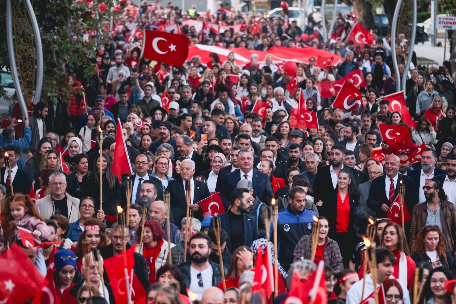Cumhuriyet sevdalısı binlerce Yalovalı, Türk bayrağı ve Atatürk posteri eşliğinde gerçekleştirilen meşaleli yürüyüşte bir araya gelerek, cumhuriyetin önemine dikkat çekti. Yürüyüş boyunca renkli görüntüler oluştu.