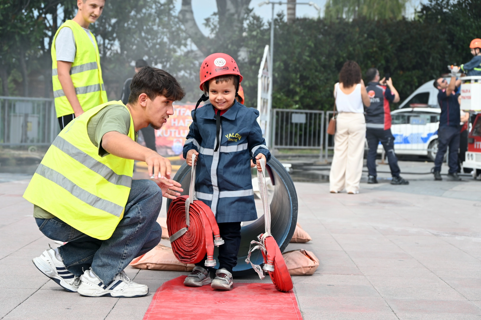 Öte yandan alanda yangın söndürme ve olaylara müdahale araç ve ekipmanları da sergilendi. Alana İstanbul Büyükşehir Belediyesi İtfaiye Müdürlüğü’nden yangın söndürme aracı gelerek buradaki etkinliğe destek verdi.