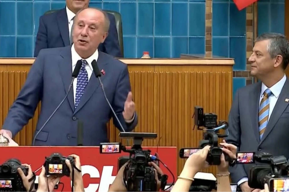 CHP Genel Başkanı Özgür Özel tarafından kürsüye davet edilen İnce’ye CHP rozetini de CHP Genel Başkanı Özgür Özel bizzat taktı. Ardından CHP grubuna hitaben bir konuşma yapan Muharrem İnce, “Sizin eğilmeyen başınız, susmayan diliniz, bükülmeyen bileğiniz olmak için geldim” dedi. CHP’de 2 dönem grup başkan vekilliği yapan ve ardından istifa ederek Memleket Partisi’ni kuran Muharrem İnce, uzun bir aranın ardından CHP Genel Başkanı Özgür Özel’in davetine cevap vermiş ve yeniden CHP’ye geri dönme kararı almıştı. TBMM’deki CHP Grup Toplantısına CHP Genel Başkanı Özgür Özel ile birlikte gelen Muharrem İnce’ye kürsüde CHP rozeti takıldı. Burada bir konuşma yapan Muharrem İnce ise partiye dönerken hiçbir hesapla gelmediğinin altını çizdi. Bunun bir geriye dönüş olmadığına sadece bir kucaklaşma olduğuna vurgu yapan İnce, “Ben buraya bir kibirler, pişmanlık ya da kişisel hesapla gelmedim. Ben buraya Sayın Genel Başkanımız Özgür Özel’in içten bir daveti ile geldim. Benim bugün buraya gelişin bir geri dönüş değil, bir kucaklaşma, hasret gidermedir. Laiklik, Atatürk İlkeleri, bilim dedik. Ayrı düştüğümüzde de Atatürk ilkelerinden hiç vaz geçmedik. Bugün burada eğilmeyen başınız, susmayan diliniz ve bükülmeyen bileğiniz olmak için buradayım. “ dedi.