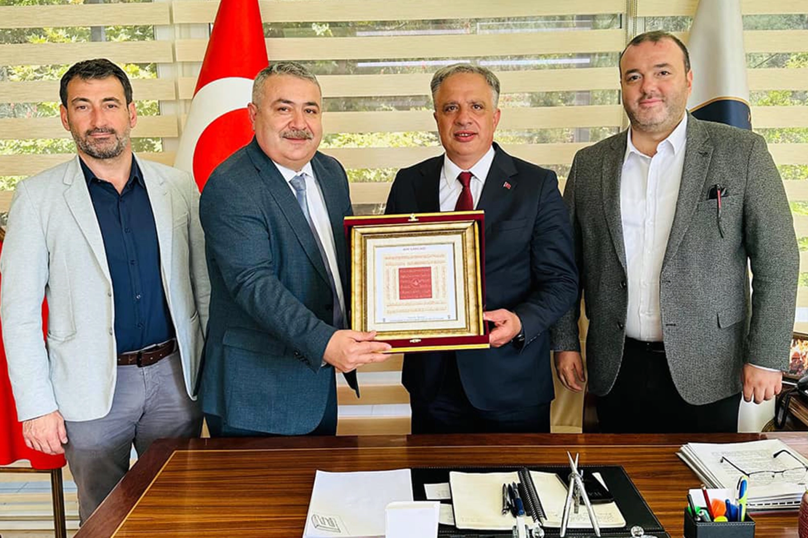 Termal Belediye Başkanı H. Sinan Acar makamında YESOB Başkanı Mustafa Bozkurt, YESO Başkanı Necati Erbul, Yalova Minibüsçüler Odası Başkanı Erhan Baş’ı kabul etti. Ziyaretten duyduğu memnuniyeti dile getiren Acar, esnaf odalarının esnafların sorunlarının ortadan kaldırılması, taleplerinin yerine getirilmesi ve seslerinin Ankara’da duyulması anlamında çok ciddi bir görev üstlendiklerini ifade etti. Bu anlamda esnaf odaları ile her zaman tam bir koordinasyon içerisinde hareket etmeyi önemsediklerini dile getiren Acar, bugüne kadar olduğu gibi bundan sonra da esnafların ve esnaf odalarının yanında olacaklarını söyledi. Kendilerini makamında ağırladığı için Termal Belediye Başkanı H. Sinan Acar’a teşekkür eden oda başkanları ise Acar’a yeni dönemde de görevinde başarılar dilediler. Oda çalışmaları hakkında bilgiler paylaşan oda başkanları her zaman kendilerine destek vermesinden dolayı da Termal Belediye Başkanı H. Sinan Acar’a teşekkür ettiler. Başkanlar tüm odalar adına Termal Belediye Başkanı Acar’a bir de hediye takdim ettiler.
