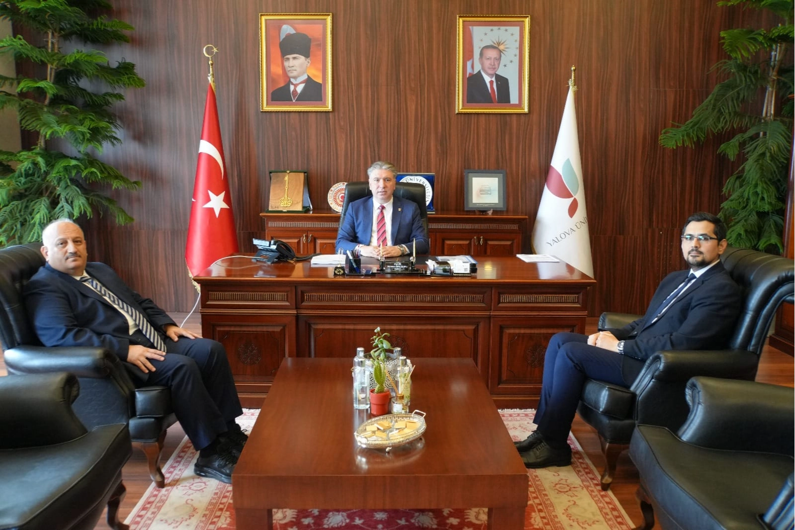 Yalova Üniversitesi Rektörü Prof. Dr. Mehmet Bahçekapılı ve Yalova Üniversitesi Rektör Yardımcısı, Tıp Fakültesi Dekanı Prof. Dr. Vefik Arıca, Yalova İl Sağlık Müdürü Uzm. Dr. Osman Karakuş ve Yalova Eğitim ve Araştırma Hastanesi Başhekimi Doç. Dr. Hasan Ergenç’i konuk etti. Ziyarette, Yalova Üniversitesi, İl Sağlık Müdürlüğü ve Yalova Eğitim ve Araştırma Hastanesi arasındaki iş birliği ve ortak projeler ele alındı. Üç kurumun yöneticileri, sağlık alanındaki iş birliğini güçlendirmek ve Yalova için faydalı projeleri hayata geçirmek adına fikir alışverişinde bulundular.