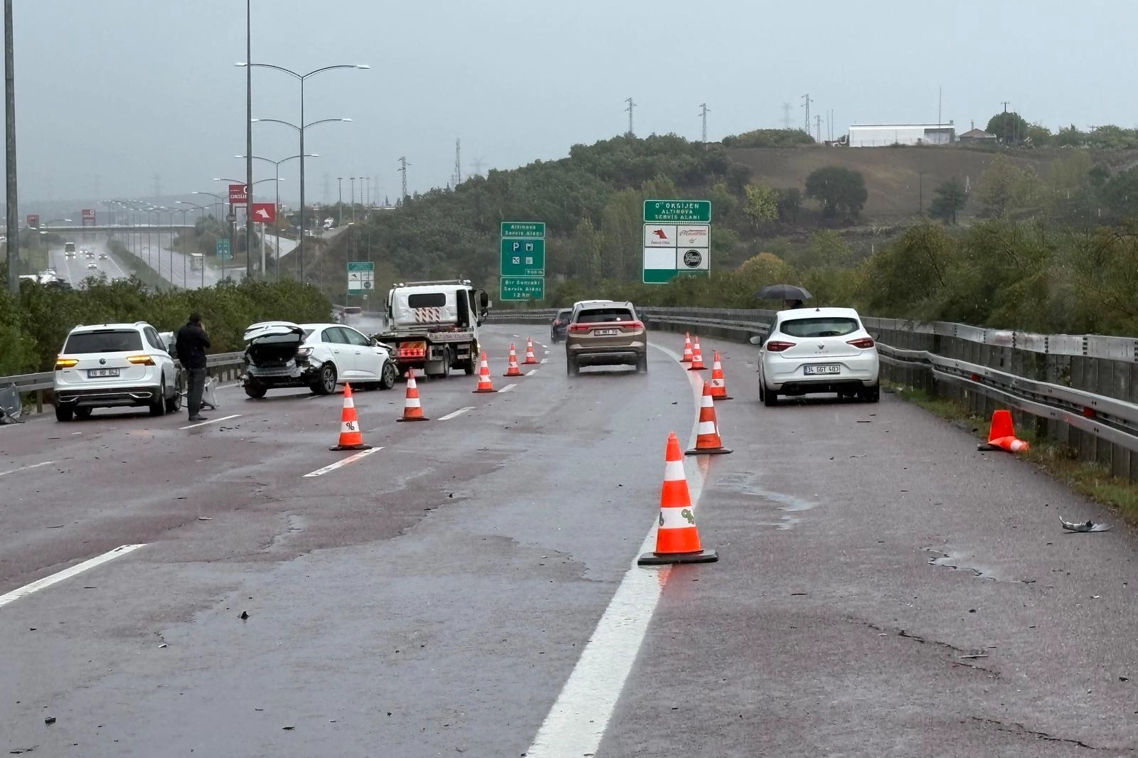 Feci kaza bugün sabah saatlerinde Gebze- İzmir Otoyolu Altınova mevkiinde meydana geldi. Edilinen bilgiye göre sağanak yağış ile birlikte otoyol üzerinde seyreden bir aracın sürücüsü, kayganlaşan yolda direksiyon hakimiyetini kaybetti.