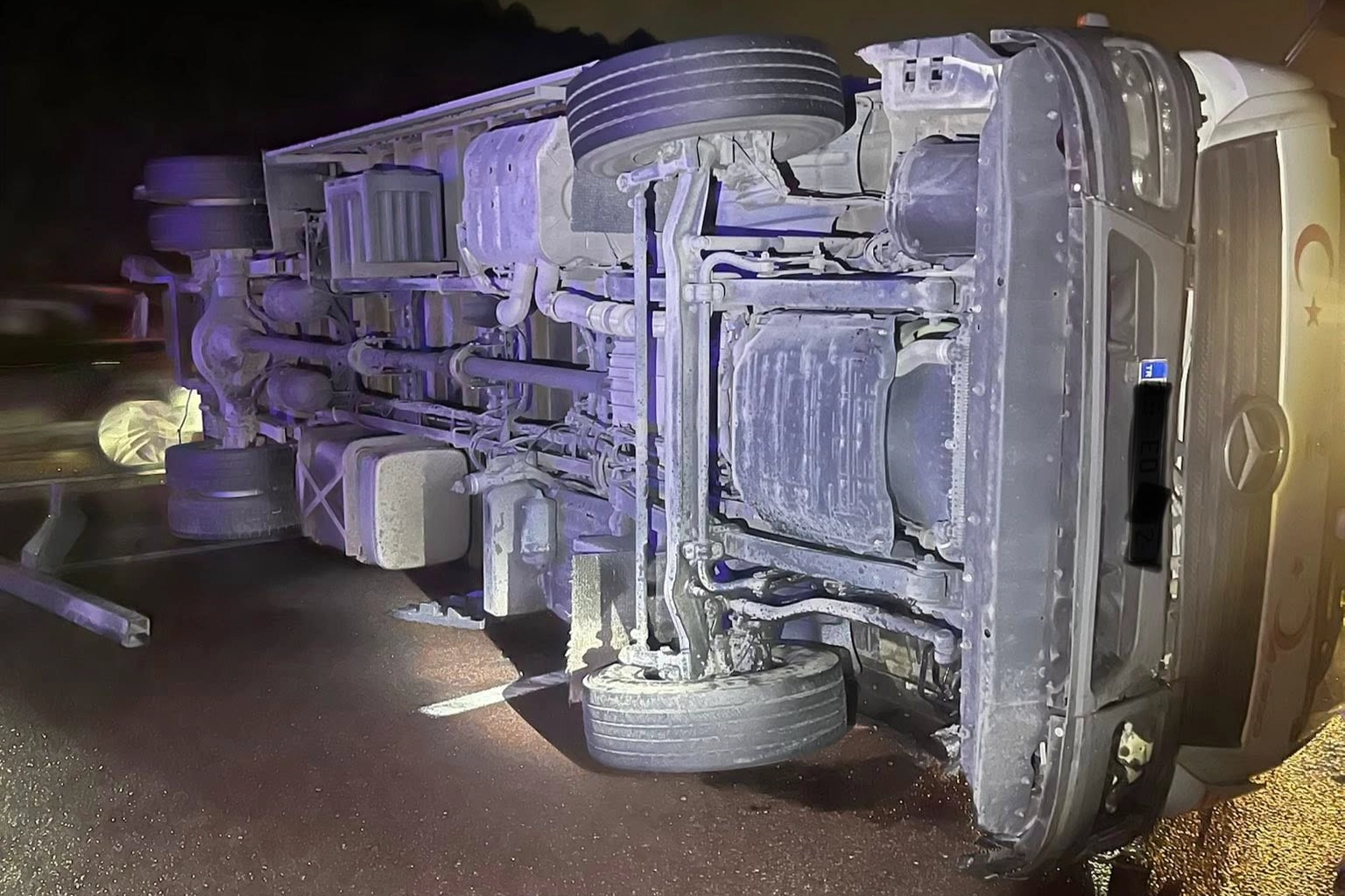Alınan bilgiye göre Gebze- İzmir otoyolu Altınova mevkiinde Bursa yönüne doğru seyir halinde olan kamyon kontrolden çıkarak savruldu. Kamyon yol ortasında yan yatarak devrildi.