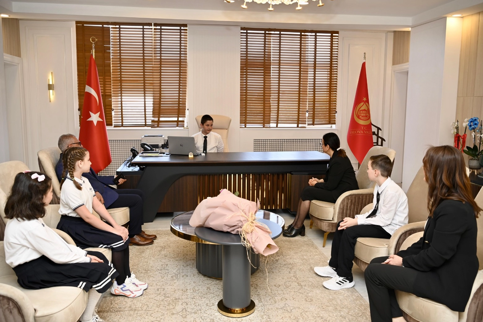 Kutlamalar kapsamında Atatürk İlkokulu öğrencileri Yalova Valisi Dr. Hülya Kaya’yı, Gaziosmanpaşa İlkokulu öğrencileri Yalova Merkez Komutanı Dz. P. Alb. Mahmut Korkmaz’ı, Mevlana İlkokulu öğrencileri Yalova İl Emniyet Müdürü Ümit Bitirik’i, İsmet Paşa Mazlum Palabıyık İlkokulu öğrencileri Yalova İl Jandarma Komutanı J. Alb. Ercan Altın’ı, Yusuf Ziya İlkokulu öğrencileri ise İl Milli Eğitim Müdürü Aytekin Yılmaz’ı makamlarında ziyaret etti.