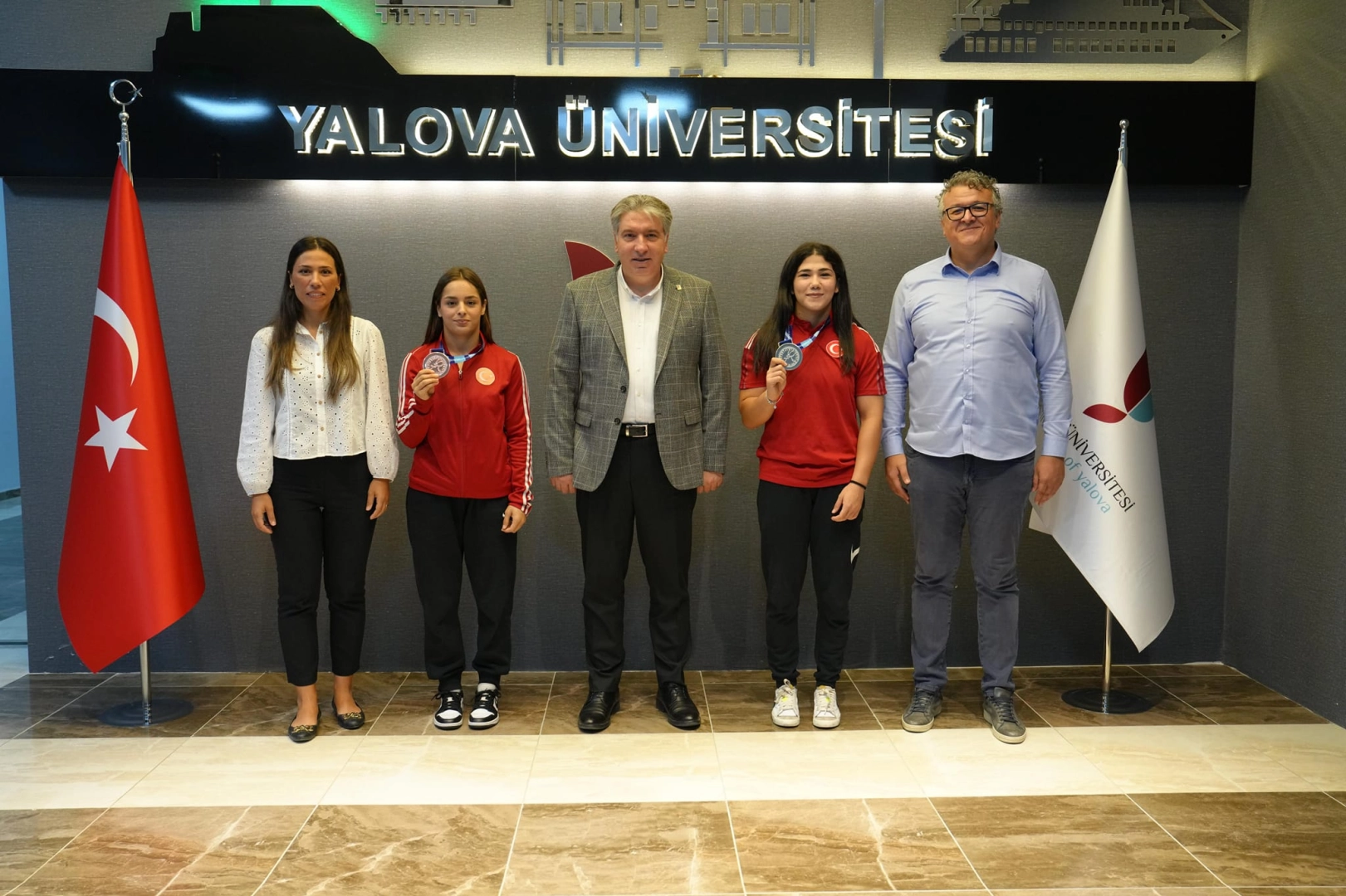 Yalova Üniversitesi Rektörü Prof. Dr. Mehmet Bahçekapılı, İspanya’nın Pontevedra kentinde düzenlenen U20 Dünya Güreş Şampiyonası’nda ülkemizi ve Yalova Üniversitesi’ni başarıyla temsil eden şampiyon sporcuları tebrik etti. 68 kilogramda dünya ikinciliği elde eden Ayşe Erkan ve 55 kilogramda dünya üçüncüsü olan Tuba Demir, Rektör Bahçekapılı tarafından kabul edildi.