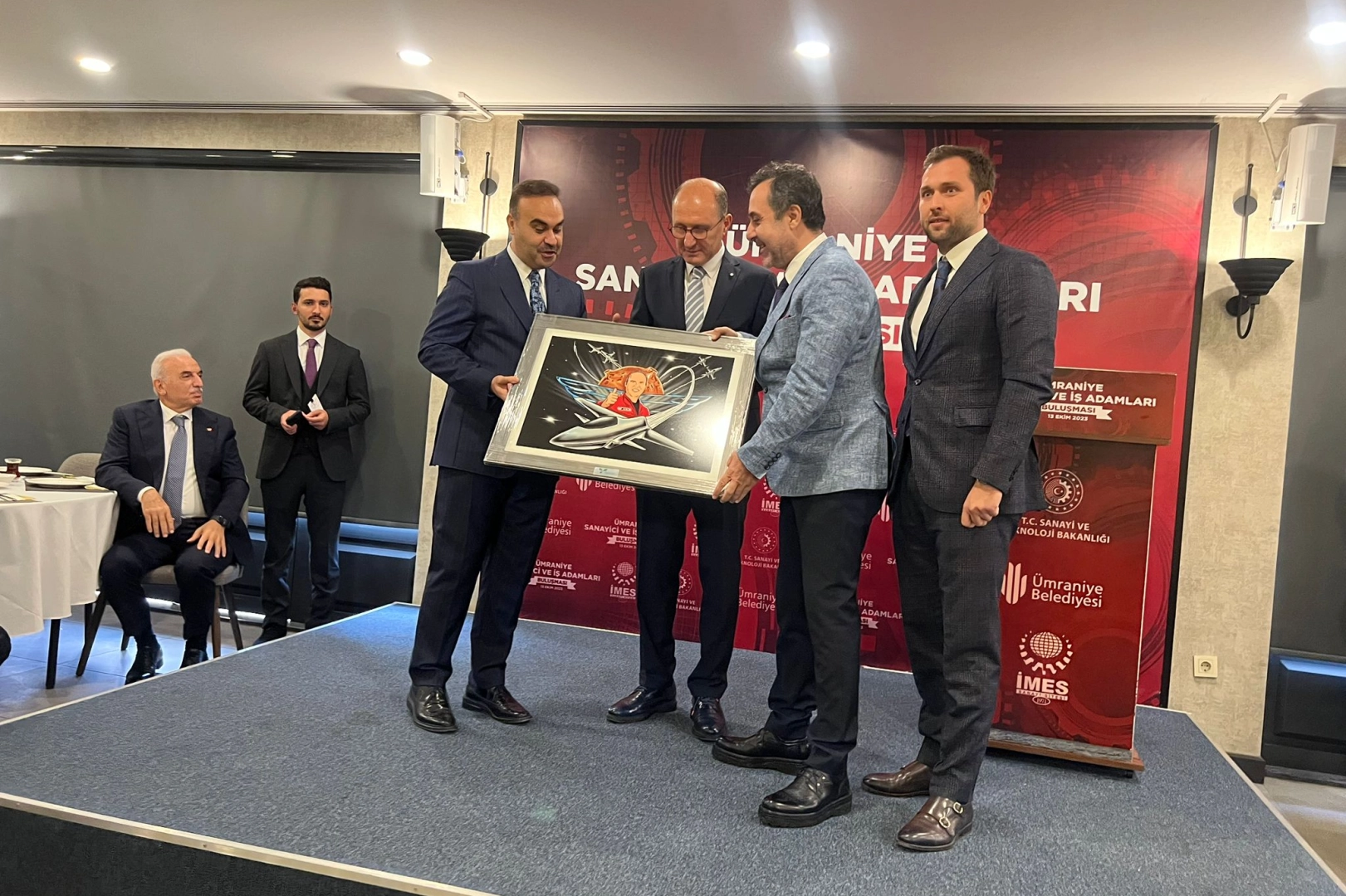 Sanayi ve Teknoloji Bakanı Mehmet Fatih Kacır, İMES ev sahipliğinde gerçekleştirilen programa katıldı. Kacır, Ümraniye Belediye Başkanı İsmet Yıldırım ve İMES Sanayi Sitesi Yönetim Kurulu Başkanı Kemal Akar’ın da katılımıyla gerçekleşen programda Yalova Makine OSB Yönetim Kurulu Başkanı Direnç Özdemir’den Yalova Makine OSB hakkında bilgi aldı. Bakan Kacır, Yalova Makine OSB’nin çalışmalarını takip ettiğini ve OSB’nin ülke ekonomisine önemli katkı sağlayacağına inandığını söyledi. Programda Yalova Makine OSB Yönetim Kurulu Başkanı Direnç Özdemir, Bakan Kacır’a bir resmini takdim etti.