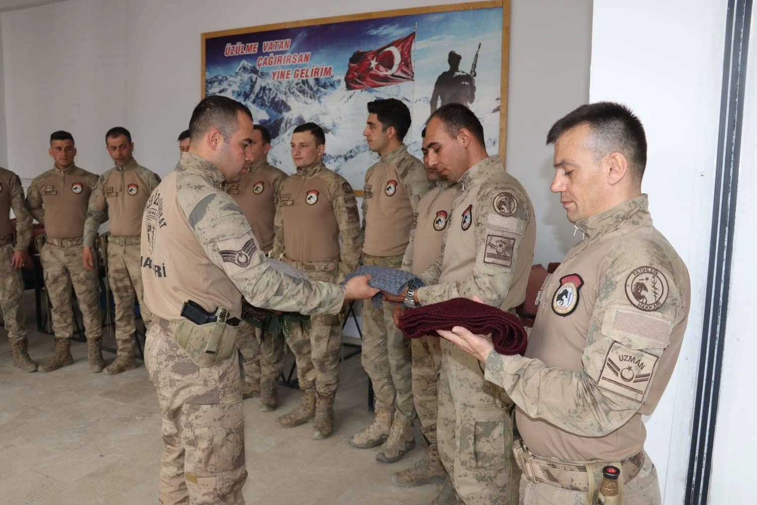 Tamam Teyze’nin gönderdiği atkılar, Hakkari İl Jandarma Komutanlığı emrinde görev yapan jandarma komandolara dağıtıldı. Tamam Teyze, Sosyal Yardımlaşma ve Dayanışma Vakfı personeli aracılığıyla görüntülü olarak jandarma komandolar ile görüştü. Komandolar, yüreklerini ısıtan hediyeler için Tamam Teyze’ye teşekkürlerini sundular.