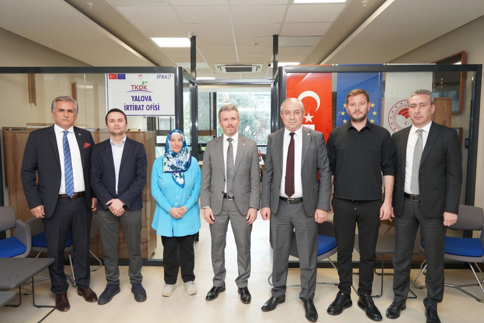 Tarım ve Kırsal Kalkınmayı Destekleme Kurumu (TKDK) Yalova İl Koordinatörü Bekir Güre ve İletişim Uzmanı Efe Beşli, Yalova Ticaret ve Sanayi Odası’nı (YTSO) ziyaret etti. Görüşmede, tarım ve kırsal kalkınma alanındaki iş birliği imkanları ele alındı. Koordinatör Bekir Güre, YTSO Yönetim Kurulu Başkanı Cemil Demiryürek, Yönetim Kurulu Üyesi Tamer Yazıcı ve Meclis Üyesi Köksal Ketenci’ye TKDK’nın projeleri ve hedefleri hakkında bilgi verdi. Güre, bölgedeki tarımsal faaliyetlerin sürdürülebilir kalkınma açısından büyük önem taşıdığını belirtti.