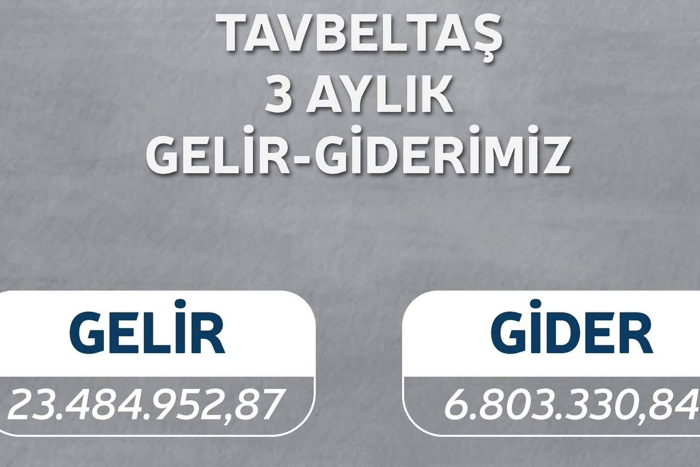 Gider 6.803.330,84 TLTAVBELTAŞ’ın 3 aylık gideri yapılan paylaşımda, 6.803.330,84 TL olarak belirtilmiştir ve bu miktarın, 356.344,32 TL’lik kısmı araç bakım ve akaryakıt, 4.994.553,70 TL’lik kısmı servis hizmeti, 163.343,00 TL’lik kısmı SSK ödemesi, 508.100,00 TL’lik kısmı maaş ödemeleri, 10.688,39 TL’lik kısmı avukatlık ücreti ve 770.301,43 TL’lik kısmı ise diğer giderlere aittir olarak açıklandı.