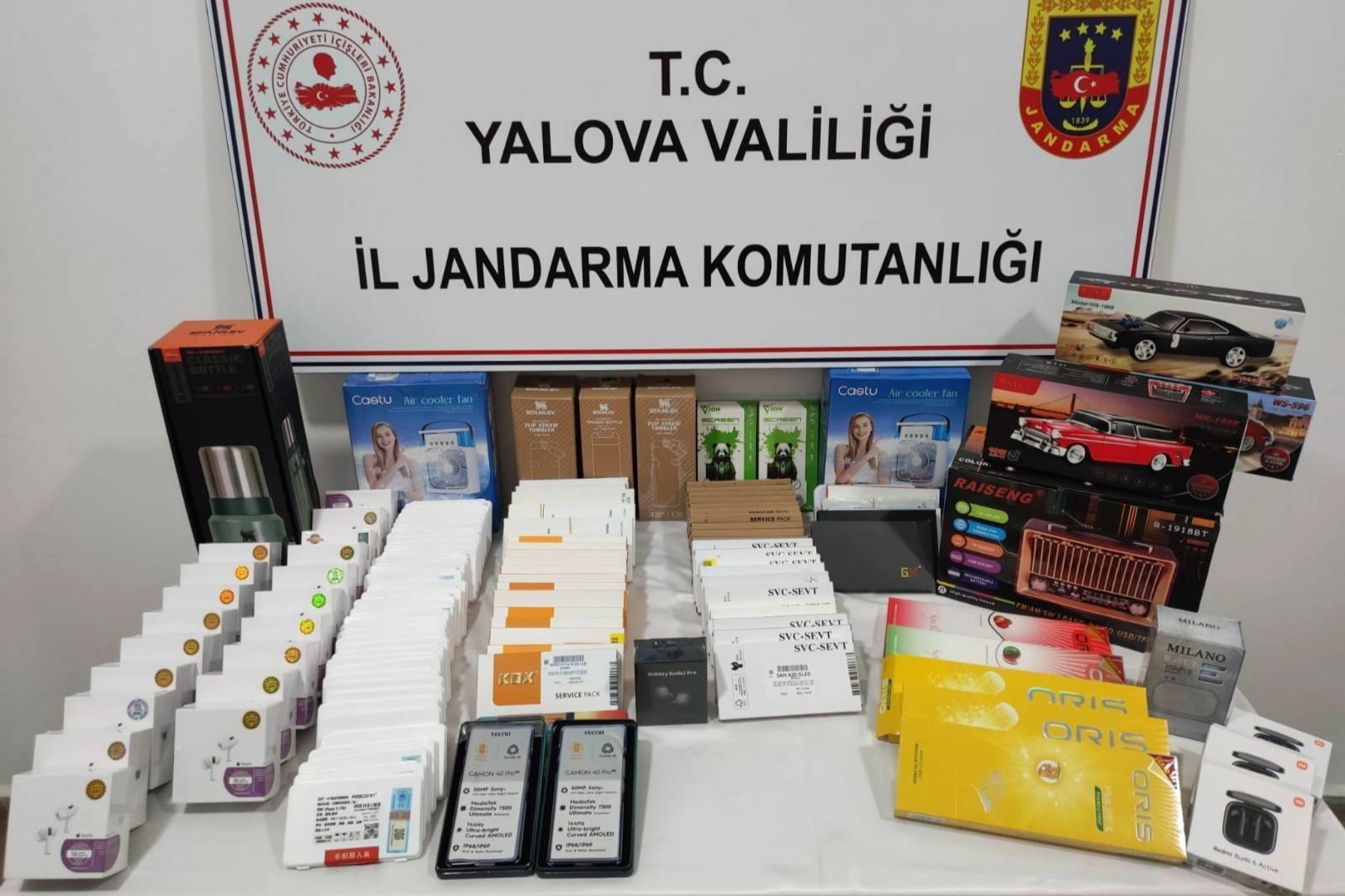 Yalova İl Jandarma Komutanlığınca, kaçakçılığın önlenmesi kapsamında yürütülen çalışmalar sonucunda; 05 Mart 2026 tarihinde S.B. ve R.B. adlı şahısların Altınova ilçesi Tavşanlı beldesinde bulunan ev, iş yeri ve araçlarında yapılan arama sonucunda gümrük kaçacağı 2 Adet cep telefonu, 49 Adet cep telefonu ekranı, 35 Adet cep telefonu bataryası, 23 Adet kablosuz bluetooth kulaklık, 12 Adet muhtelif emtia, 1 Adet elektrikli ev süpürgesi, 59 Paket bandrolsüz sigara ele geçirildi. Yakalanan S.B. ve R.B. adlı şahıslar hakkında idari ve adli işlem başlatıldı. Yapılan açıklamada "Yalova Valiliği koordinesinde, Yalova İl Jandarma Komutanlığınca vatandaşlarımızın huzur ve güven ortamı içerisinde yaşamalarını sağlamak maksadıyla her türlü suç ve suçlularla mücadeleye kararlılıkla devam edilecektir. Kamuoyuna saygıyla duyurulur" denildi.
