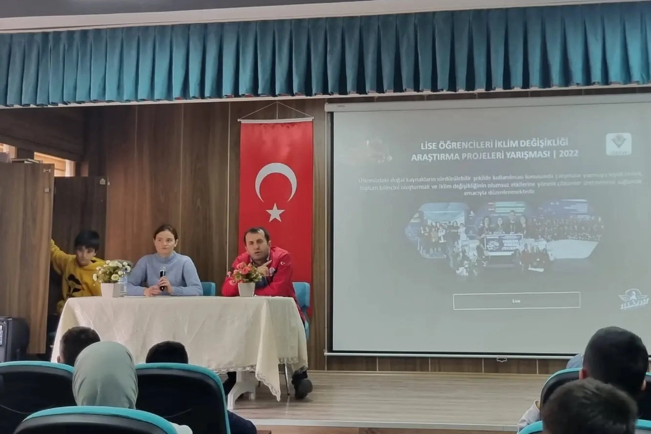 T3 Vakfı Yalova Sorumlusu Mine Yardi, öğrencilere TEKNOFEST yarışmaları hakkında kapsamlı bir sunum gerçekleştirdi. Sunumunda yarışmaların detaylarına, başvuru adımlarına ve önemli tarihlerine dair bilgi veren Yardi, öğrencilerin merak ettikleri konularda sorularını da yanıtlayarak etkileşimli bir ortam sağladı.