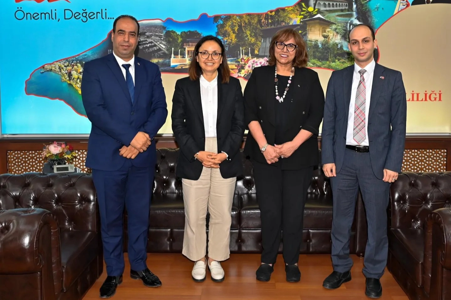 Filistin Devleti İstanbul Başkonsolosu Hanaa Aburamadan ve Konsolos Moath Alatshan, Yalova Valisi Dr. Hülya Kaya'yı makamında ziyaret etti. Yalova Valisi Dr. Hülya Kaya, İsrail'in Filistin'e ve masum sivillere yönelik sürdürdüğü katliamları nefretle lanetlediklerini belirtti. Vali Kaya, Türkiye Cumhuriyeti Devleti'nin her zaman özgür Filistin'in yanında olduğunu ve olmaya devam edeceğini vurguladı. Filistin Devleti İstanbul Başkonsolosu Hanaa Aburamadan ve Konsolos Moath Alatshan, Vali Kaya ile bir süre daha istişarede bulundu. Görüşmede, Filistin-Türkiye ilişkileri ve bölgesel konular ele alındı.