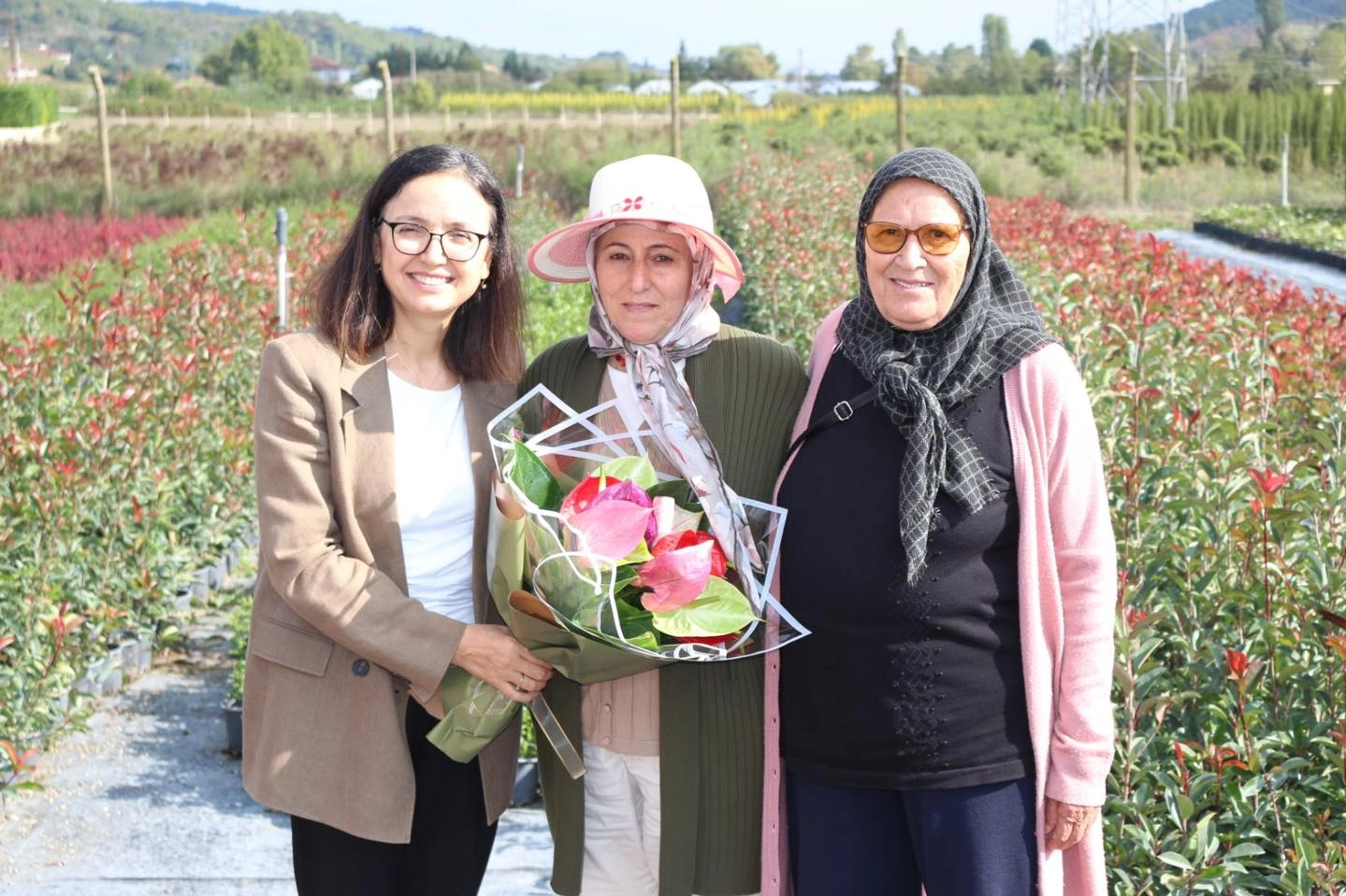 En genç ve en tecrübeli kadın üreticilere çiçek takdim eden Vali Dr. Hülya Kaya, Karagül Süs Bitkileri firması sahibi Nihal Başkan’ın işletmesini gezdikten sonra günün anısına fotoğraf çektirdi.