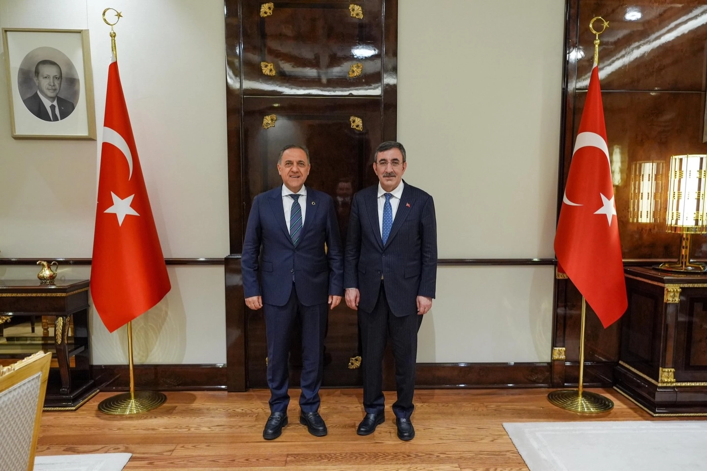 Cumhurbaşkanı Yardımcısı Cevdet Yılmaz, Yalova Valisi Dr. Ahmet Hamdi Usta’yı makamında ağırladı. Yalova Valisi Dr. Ahmet Hamdi Usta, ziyaretinde desteklerinden ötürü Cumhurbaşkanı Yardımcısı Yılmaz’a teşekkürlerini iletti. Cumhurbaşkanı Yardımcısı Cevdet Yılmaz ve Yalova Valisi Dr. Ahmet Hamdi Usta arasındaki görüşmede devlet kurumları arasındaki uyum ve iş birliğinin önemine vurgu yapıldı. Görüşmeyle ilgili açıklama yapan Yalova Valisi Dr. Ahmet Hamdi Usta, “Cumhurbaşkanı Yardımcımız Sayın Cevdet Yılmaz Beyefendiye nazik kabulleri için şükranlarımı arz ediyorum” dedi.