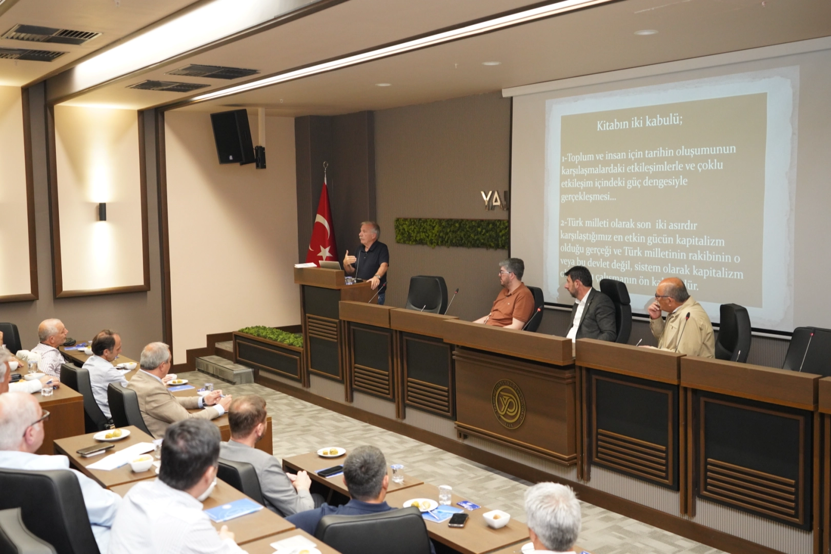 1999-2004 ile 2009-2014 dönemlerinde Yalova Belediye Başkanlığı yapan ve önceki dönem YTSO başkanlarından Yakup Bilgin Koçal, 8. Kitabı ‘Kapitalizmin Kıyısında Bir Şehir Hikayesi’ ile ilgili sunum gerçekleştirdi.