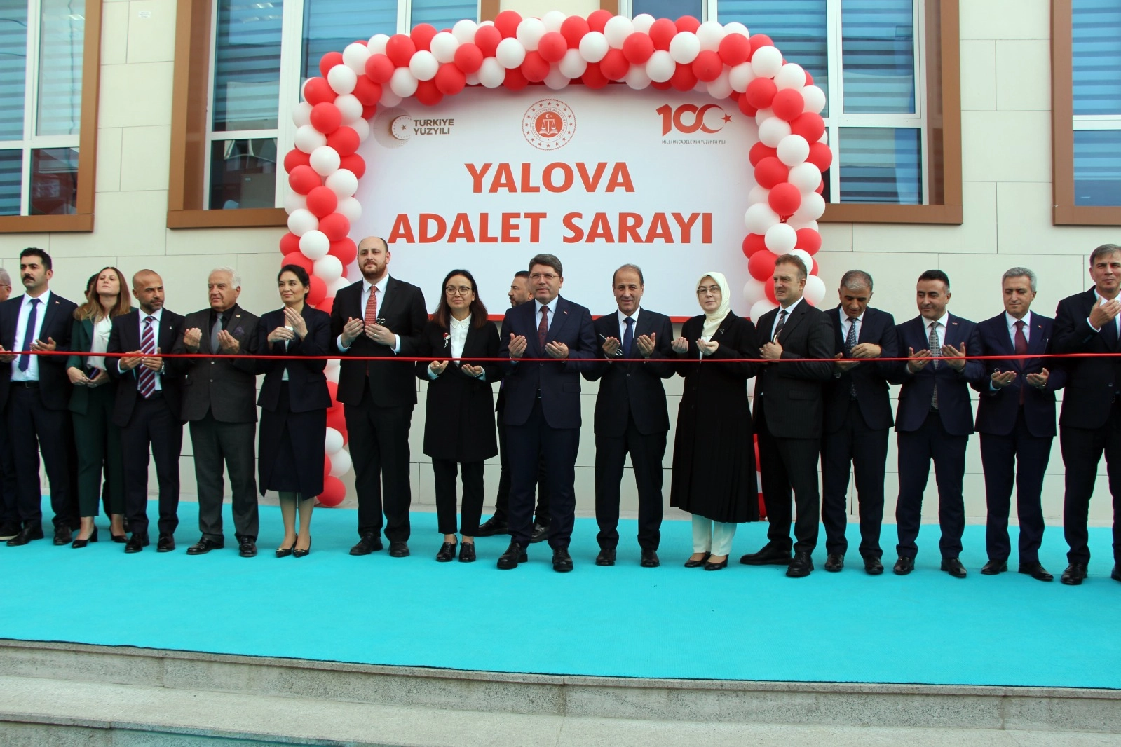 Valiliğin ardından yapımı tamamlanan Yalova Adalet Sarayı’na geçen Bakan Tunç buradaki törene katıldı. Saygı duruşunda bulunulması ve İstiklal Marşı’nın okunması sonrasında konuşmalara geçildi. Açılış konuşmasını Yalova Cumhuriyet Başsavcısı Duygu Bayar Öksüz gerçekleştirdi. Yalova Adalet Sarayı hakkında bilgiler veren Öksüz, “Mahkemeler sadece hukuki işlemlerin yürütüldüğü mekanlar olmanın da ötesinde adaletin simgesi, toplumun her kesimine güven veren vatandaşlarımızın hak ve özgürlüklerinin korunduğu bir semboldür. O nedenle bugün açılışını gerçekleştirdiğimiz Yalova Adliyesi sadece bir bina değil, adaleti tesis edecek, adalete erişiminin kolaylaştığı, vatandaşlarımızın hak ve adalet arayışlarının güven içerisinde karşılık bulduğu bir merkez olacaktır. Yeni hizmet binamız 4 bin metrekare alan üzerinde 16 bin 24 metrekare kapalı alana sahip. Savcılık ve Mahkemeler Binası olarak iki bloğa sahiptir. Yeni hizmet binamızda toplam 55 adet hakim, savcılık odası, 23 adet hakim savcı yardımcısı odası, 47 adet savcılık ve mahkeme kalem odası, 10 adet duruşma salonu, 3 adet toplantı salonu, 5 adet baro odası, 6 adet adli tıp şube müdürlüğü, 8 adet adli görüşme odası, PTT şubesi, 2 adet mescit ve 1 yemekhane bulunuyor. Yeni Adalet Sarayımızın yapımında bize desteklerini esirgemeyen, her zaman destek olan, her zaman yanımızda olan tüm imkanlarımızı seferber ederek adliyemizin en kısa sürede ve en güzel şekilde yapımını sağlayan Sayın Adalet Bakanımız Yılmaz Tunç’a teşekkürlerimi arz ediyorum” dedi.