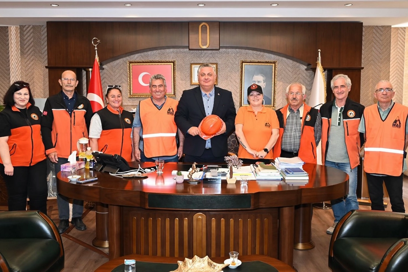 Yalova Belediye Başkanı Mehmet Gürel, Yalova MAG-DER Başkanı Bülent Gemalmaz ve yönetim kurulu üyelerini makamında konuk etti. Gerçekleşen nezaket ziyaretinde, MAG-DER’in çalışmaları, afetlere hazırlık süreci ve yerel yönetimle iş birliği konuları ele alındı. Ziyarette konuşan Başkan Mehmet Gürel, doğal afetlerin etkilerini en aza indirmek için sivil toplum kuruluşlarıyla koordineli çalışmanın önemine dikkat çekerek, ‘’Afetlere hazırlıklı ve dirençli bir Yalova için gönüllülük esaslı çalışmalar yürüten MAG-DER’in yeni yönetimine başarılar diliyor, dirençli bir şehir için her zaman iş birliği içinde olacağımızı ifade ediyorum’’ dedi. MAG-DER Başkanı Bülent Gemalmaz ise Başkan Gürel’e desteklerinden dolayı teşekkür ederek, “Afetlere dirençli bir Yalova için gönüllülerimizle gece gündüz demeden çalışıyoruz. Yerel yönetimle kurduğumuz bu güçlü bağ, hazırlık ve müdahale süreçlerimizi daha etkin hale getiriyor,” ifadelerini kullandı. Ziyaret, hatıra fotoğrafının çekilmesinin ardından, karşılıklı iyi niyet dilekleri ve iş birliğinin geliştirilmesine yönelik temennilerle sona erdi.