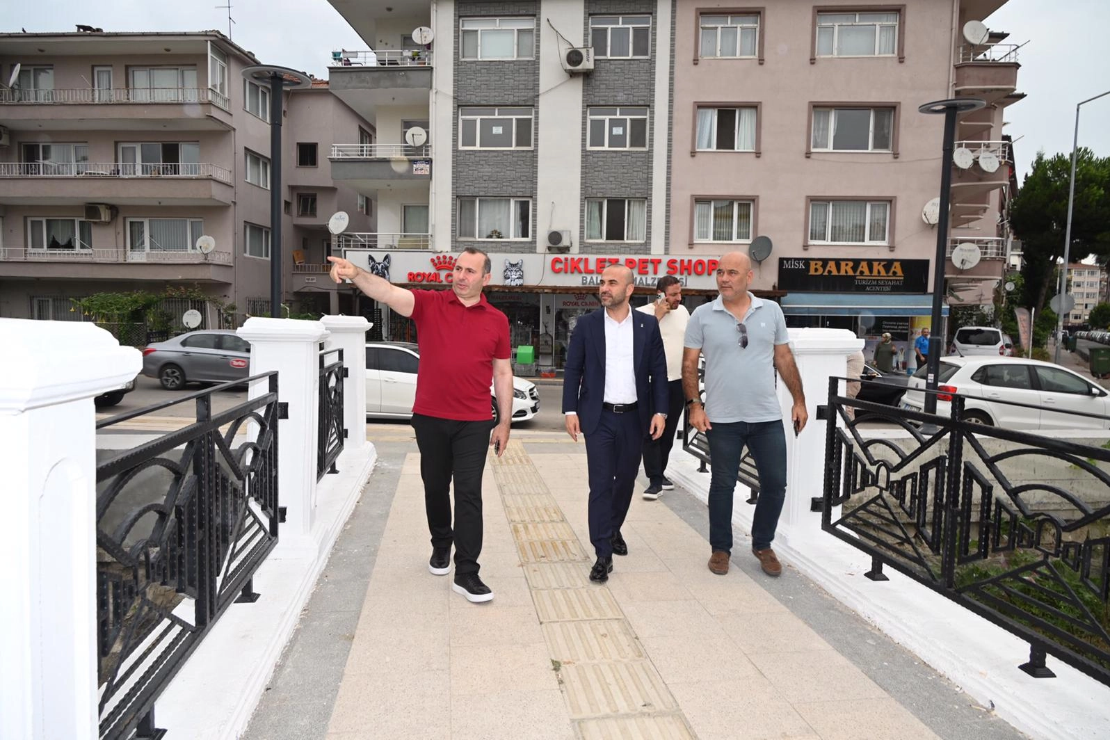 Mesire Yolu Sokak ile Gezi Yolu Sokak’ı birbirine bağlayan yaya köprüsünün yenileme çalışmasının tamamlanmasının ardından Yalova Belediye Başkanı Mustafa Tutuk ve AK Parti Yalova İl Başkanı Umut Güçlü yerinde incelemelerde bulundu.