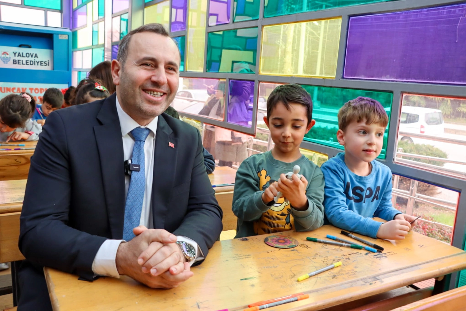 Başkan Mustafa Tutuk, Yalova Belediyesi Çocuk Tiyatrosu’nda gerçekleştirilen atölyeleri ziyaret ederek çocukların eğlencesine ortak oldu. Çocuklarla tek tek selamlaşıp ardından onlarla aynı sıraya oturan Tutuk, öğretmenlerin tariflerine uyarak atölye çalışması gerçekleştirdi.