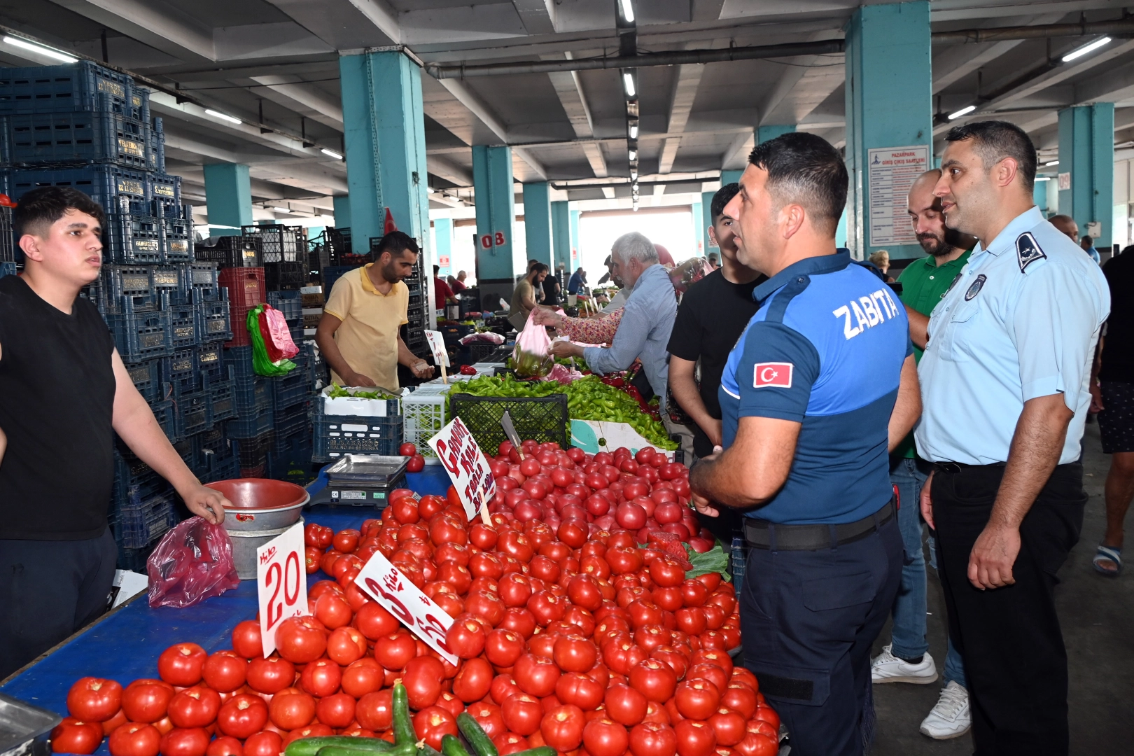 Yalova Belediyesi Zabıta Müdürlüğü ile Hal Müdürlüğüne bağlı ekipler, Pazar Yerleri Uygulama Yönetmeliği kapsamında pazar yerlerinde denetlemelerini sürdürüyor. Ekipler, vatandaşların huzurlu bir ortamda alışveriş yapabilmesi için çalışırken, fiyatlar konusunda mağdur edilmemesi için denetimlerine devam ediyor. Ekipler; Pazarın ve tezgâhların düzeni, sergi işgaliyesi, sebze ve meyvelerin uygun şartlarda satılıp satılmadığını denetleyerek, fiyat etiket kontrolü gerçekleştiriyor.