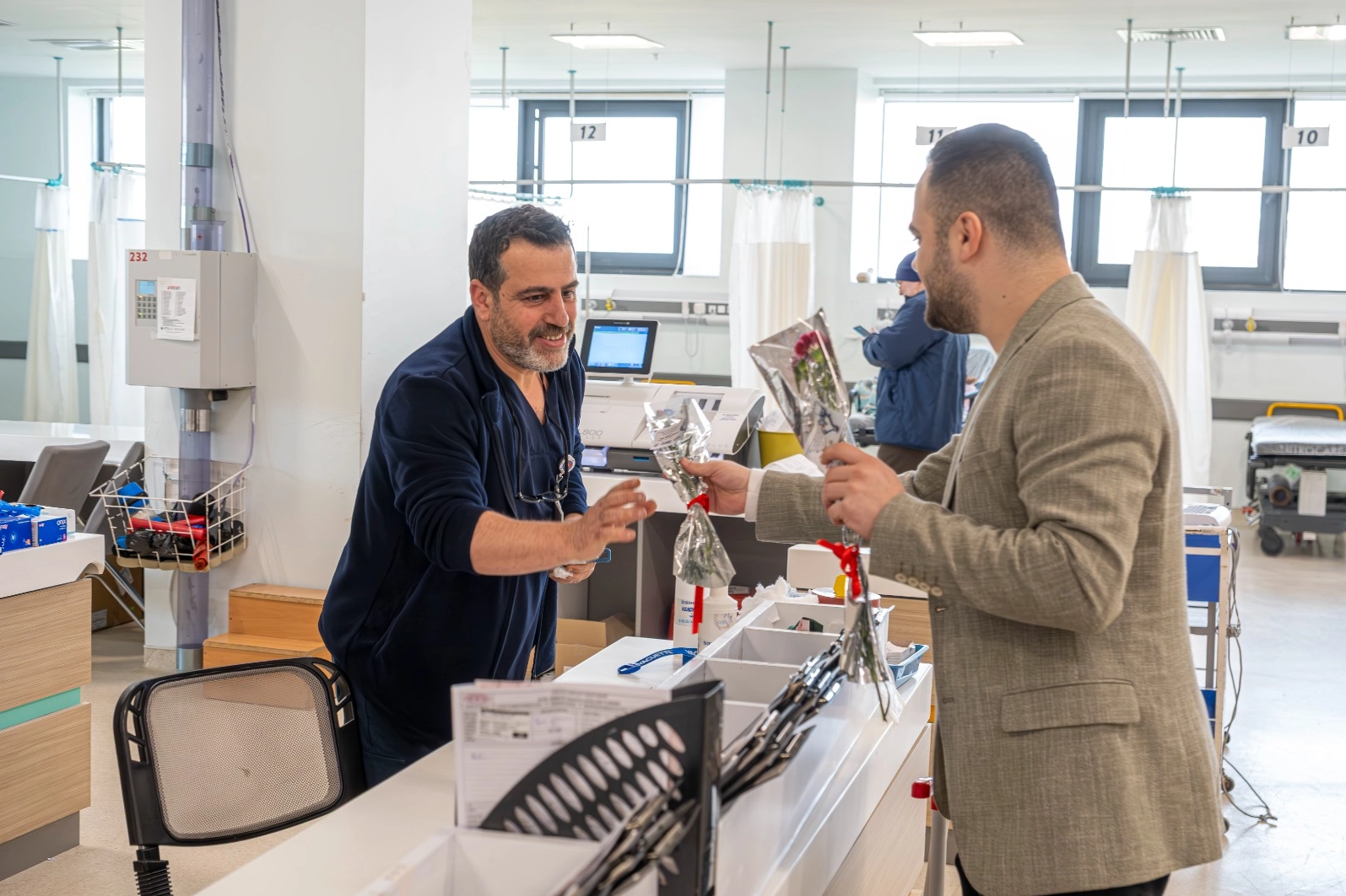 Gerçekleştirilen ziyaretlerde sağlık emekçilerine çiçek takdim edilirken, gece gündüz demeden büyük bir özveriyle görev yapan sağlık çalışanlarına teşekkür edildi.