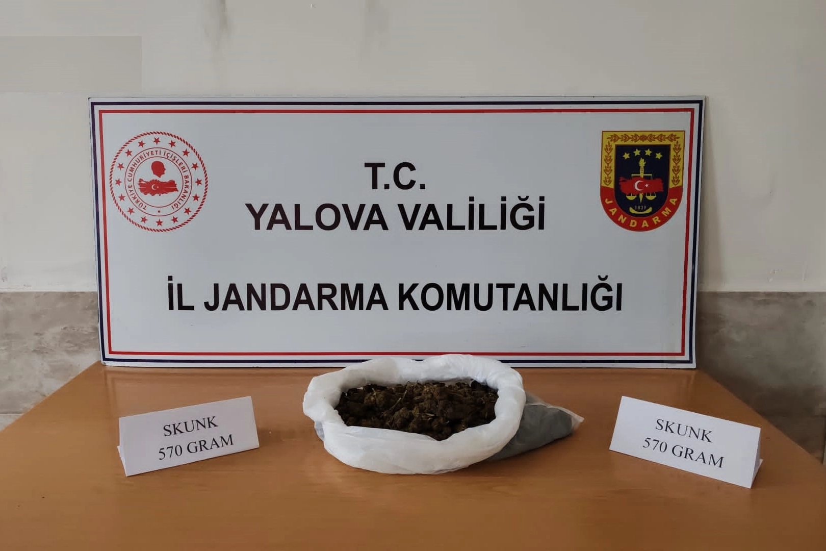 Yalova İl Jandarma Komutanlığı’ndan yapılan açıklamaya göre, bir şahsın İstanbul ilinden temin ettiği uyuşturucu maddenin deniz yolu ile Yalova iline getirileceği bilgisine ulaşıldı. Alınan bilginin değerlendirilmesi üzerine, Çiftlikköy ilçesi Taşköprü beldesinde bir operasyon düzenlendi. Operasyonda, şüpheli O.T. isimli şahıs ağaçlık alanda uyuşturucu madde saklarken suçüstü yakalandı. Şüphelinin sakladığı 570 gram skunk bitkisi jandarma ekipleri tarafından ele geçirildi. Yakalanarak gözaltına alınan şüpheli O.T. hakkında gerekli yasal işlemlere başlandı. Şüphelinin, uyuşturucu madde ticareti yapmak suçundan adliyeye sevk edileceği öğrenildi. Yalova Valiliği koordinesinde, Yalova İl Jandarma Komutanlığı, emniyet ve asayiş ile kamu düzeninin sağlanması maksadıyla, uyuşturucu madde ile mücadele öncelikli olmak üzere her türlü suç ve suçlularla mücadele etmeye devam edeceğini bildirdi.