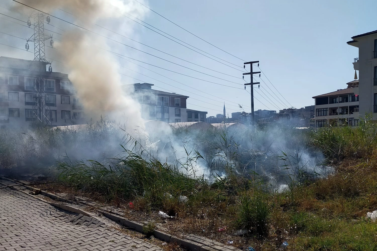 Yangının çıktığı arazinin yan tarafında naylonla kaplı seraların olması, yangının büyümesi halinde büyük zarar oluşabileceği endişesini doğurdu.
