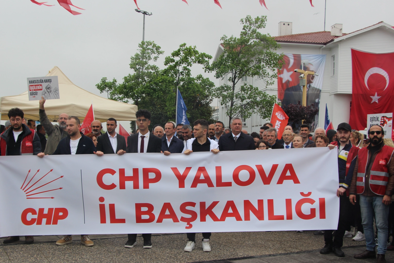 1 Mayıs İşçi ve Emekçiler Bayramı, Türkiye’nin pek çok yerinde olduğu gibi Yalova’da da coşkuyla kutlandı. Yalova Belediye Başkanı Mehmet Gürel, Altınova Belediye Başkanı Yasemin Fazlaca, Çiftlikköy Belediye Başkanı Adil Yele, CHP Yalova İl Başkanı Erdem Doğancı, işçi sendikaları, bazı partilerin de aralarında bulunduğu yaklaşık 1000 kişi, Deprem Anıtı’ndan başlayan kortej yürüyüşü ile meydana ilerledi. Kalabalık, alkışlar eşliğinde 15 Temmuz Demokrasi ve Cumhuriyet Meydanı’nda toplandı.