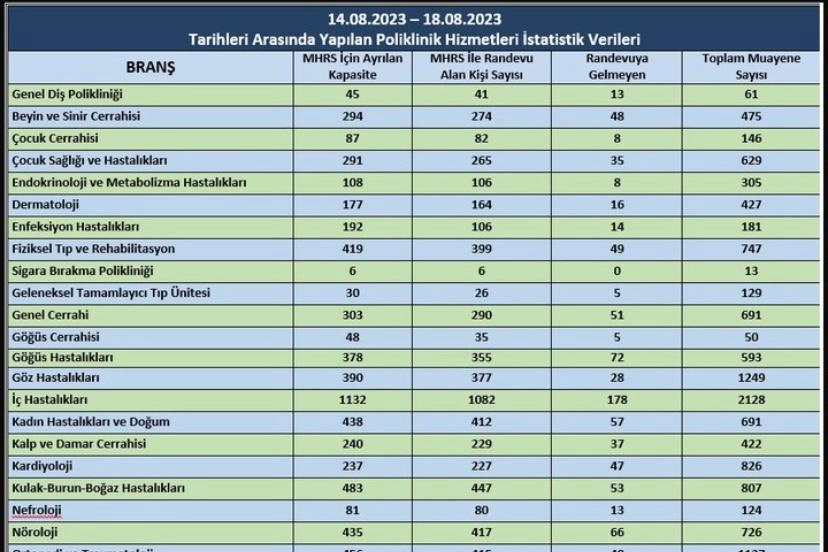 Randevu aldıktan sonra hastanede bulunmayan vatandaşlar için aynı branştan 15 gün içinde randevu alınamayacağı açıklanmıştı. Bu haftaki sayılarda yeniden yükselme yaşandı. Yalova Eğitim ve Araştırma Hastanesi’nde bu hafta MHRS için ayrılan kapasite sayısı 7358 kişi olarak belirlendi, MHRS’den randevu alan kişi sayısı ise 6848 kişi oldu. Toplamda 20936 kişilik haftalık randevu sayısından 976 vatandaş hastaneye gitmeyerek randevusuna gitmemiş oldu. Bu durum sıra bekleyen hastaları olumsuz etkilemektedir. Bu haftaki verilere göre, İç hastalıkları bölümü çok talep görürken aynı zamanda da en çok randevuya gelmeyen vatandaşlar arasındaki branşa sahip oldu. Murat Can Aytemur