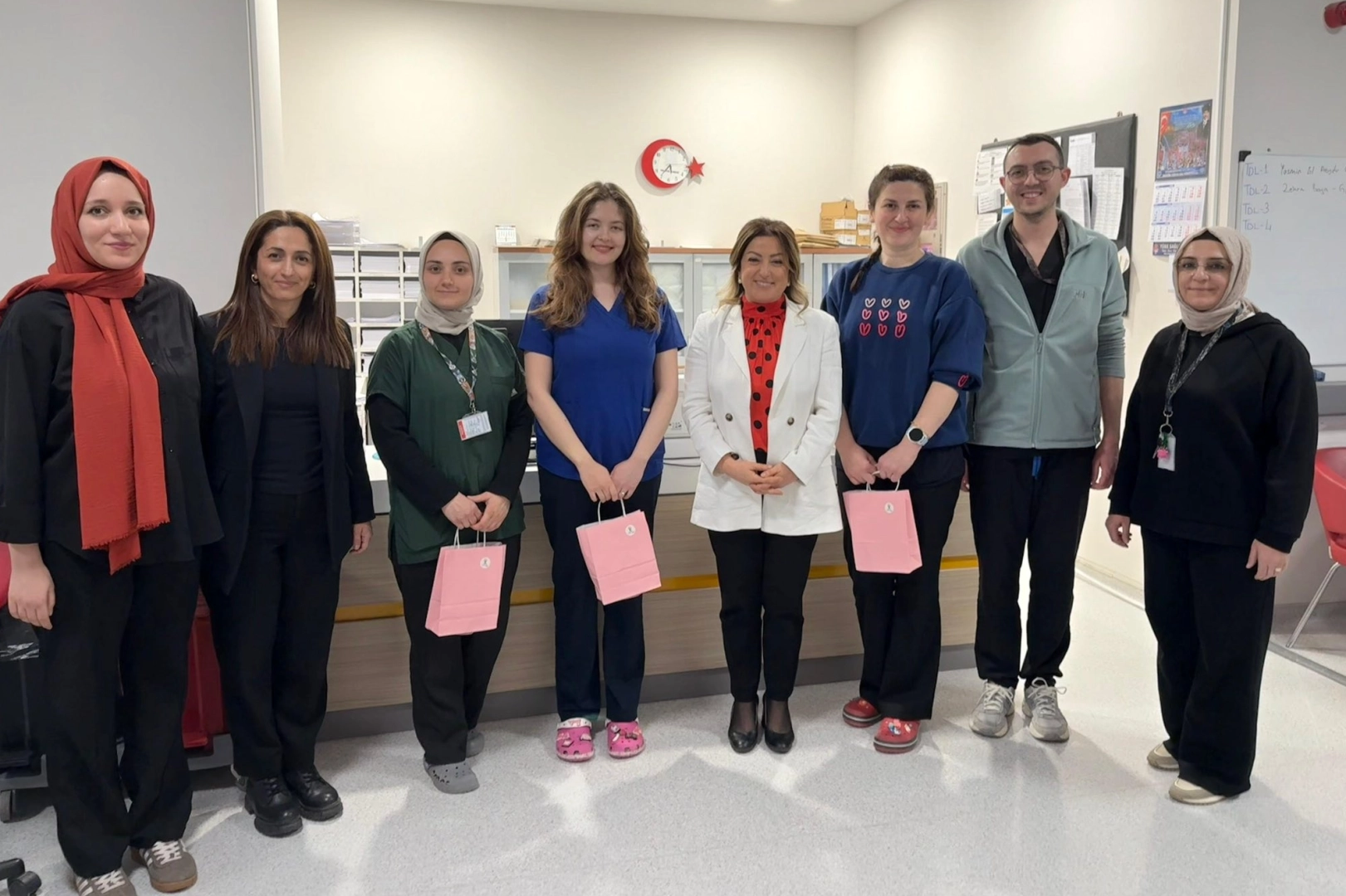 Hastanenin doğumhane ve ilgili birimlerini ziyaret eden AK Partili kadınlar, ebelerin bu özel gününü çiçeklerle kutlayarak yürüttükleri fedakarca çalışmalar için teşekkürlerini iletti.